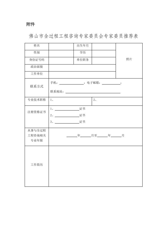 佛山市全过程工程咨询专家委员会专家委员推荐表.docx