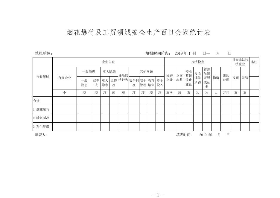 烟花爆竹及工贸领域安全生产百日会战统计表.doc