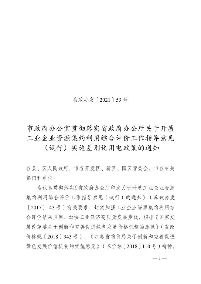 市政府办公室贯彻落实省政府办公厅关于开展工业企业资源集约利用综合评价工作指导意见(试行)实施差别化用电政策的通知.docx