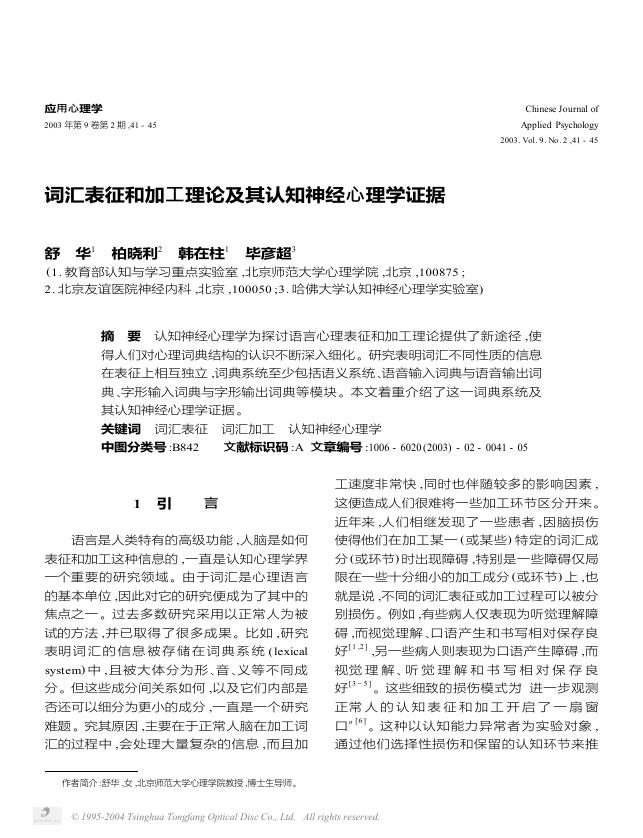 2003_词汇表征和加工理论及其认知神经心理学证据_舒华.pdf