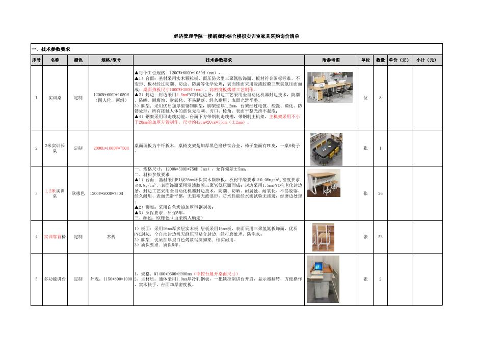 经济管理学院一楼新商科综合模拟实训室家具采购询价清单.xlsx
