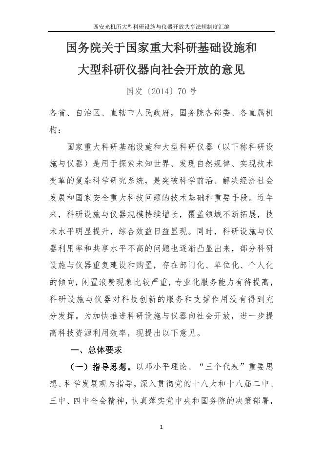 1、国务院关于国家重大科研基础设施和大型科研仪器向社会开放的意见(国发〔2014〕70号).pdf