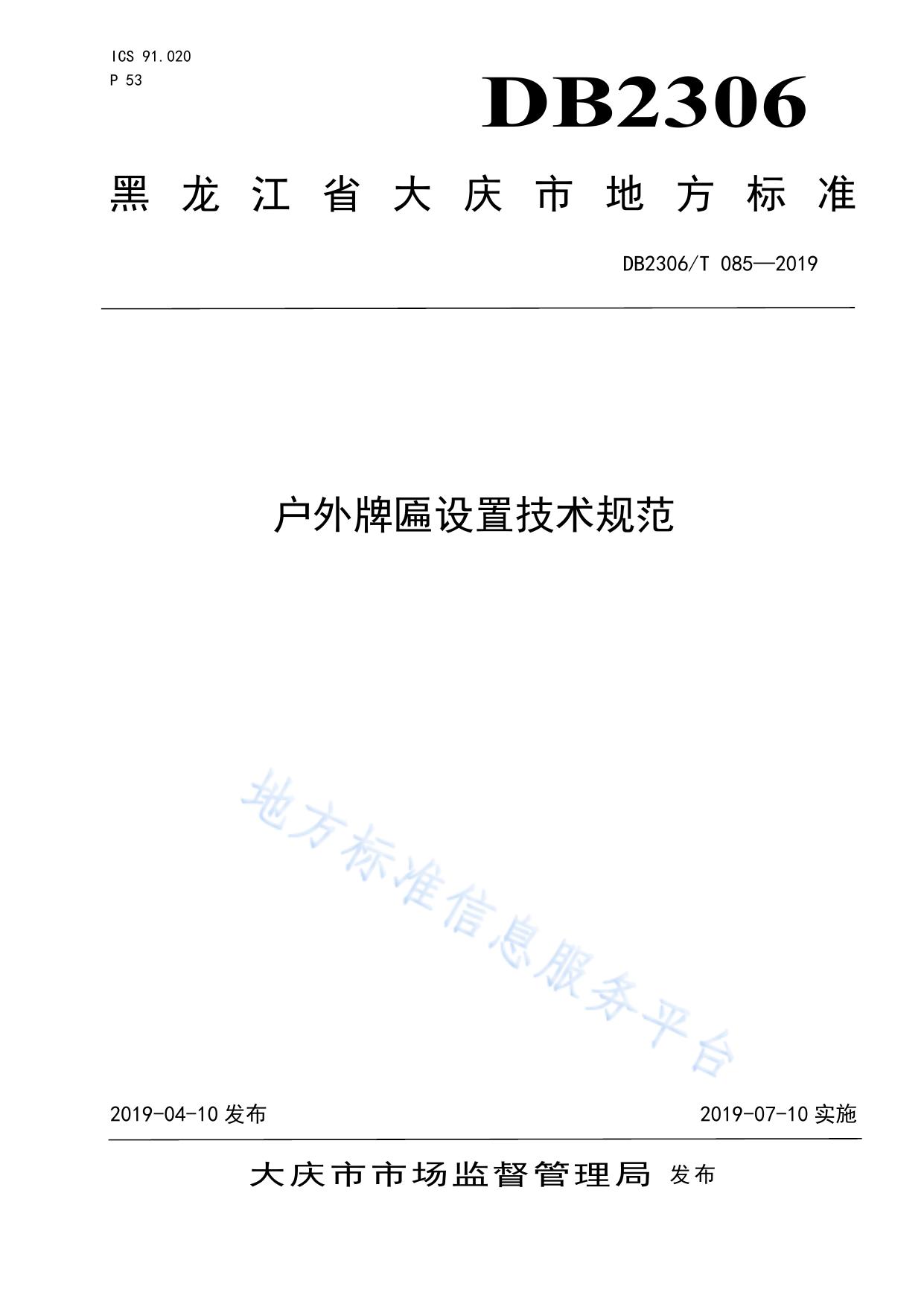 《户外牌匾设置技术规范》