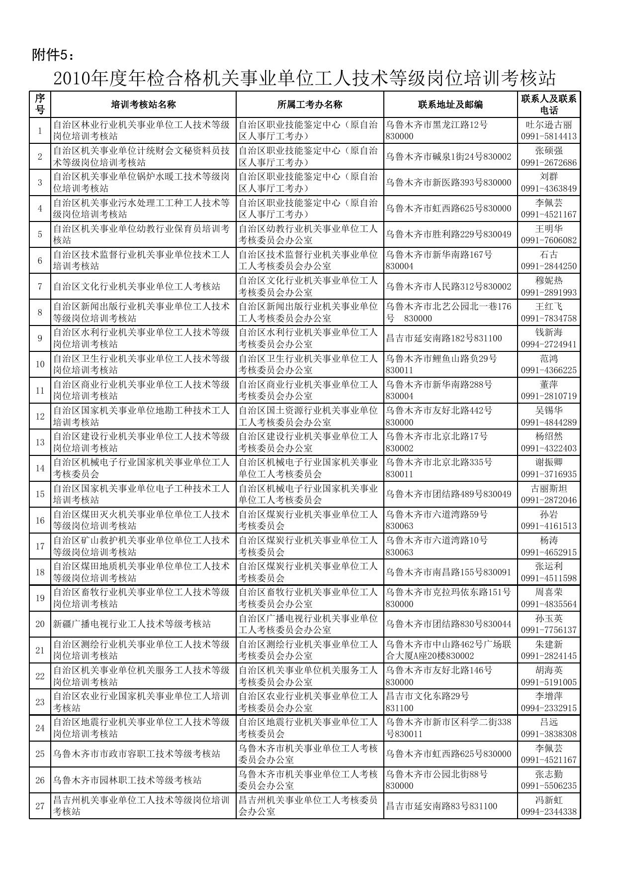 2010年度年检合格机关事业单位工人技术等级岗位培训考核站.xls