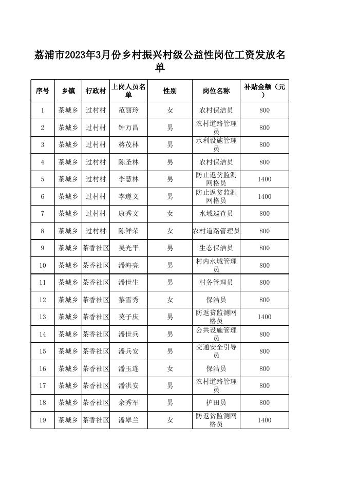 荔浦市2023年3月份乡村振兴村级公益性岗位工资发放名单.xlsx