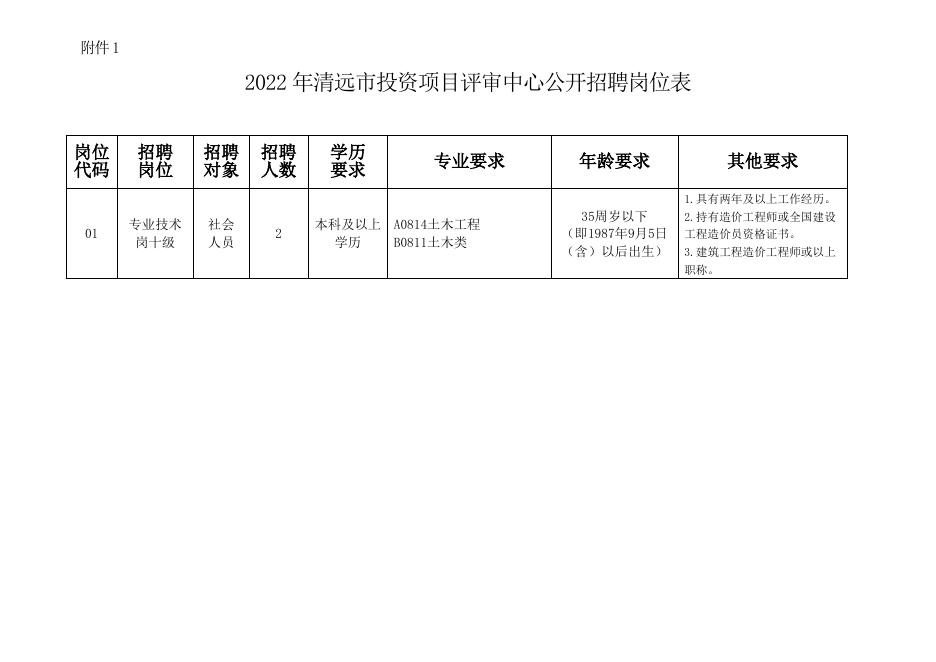 2022年清远市投资项目评审中心公开招聘岗位表.doc