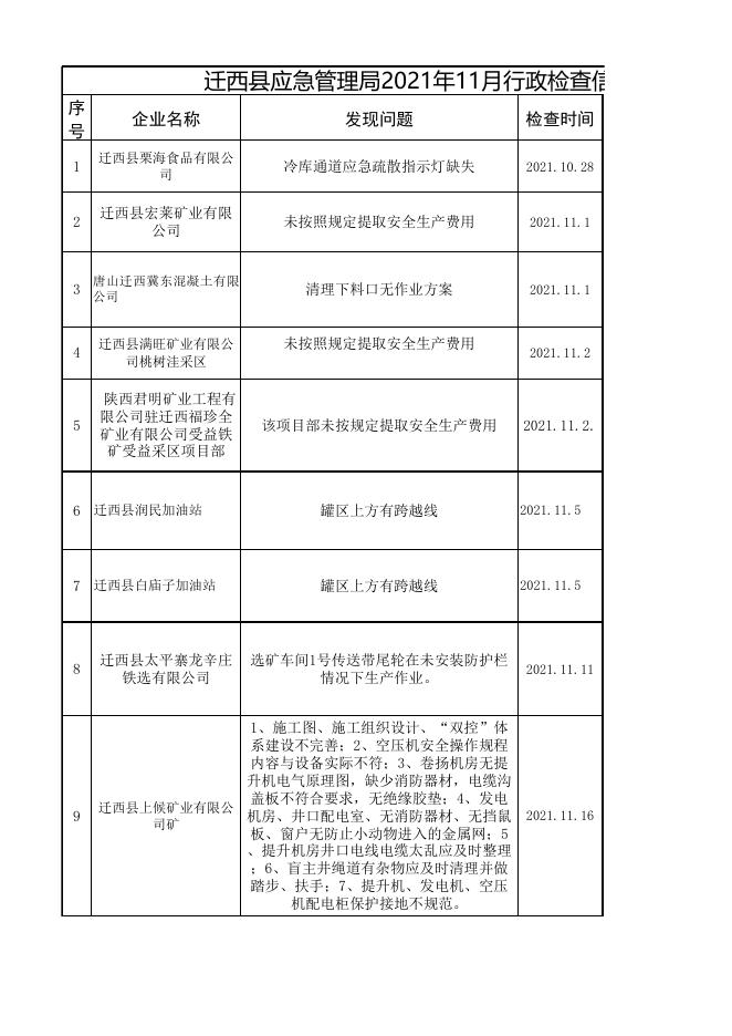 迁西县应急管理局2021年11月行政检查信息表.xlsx