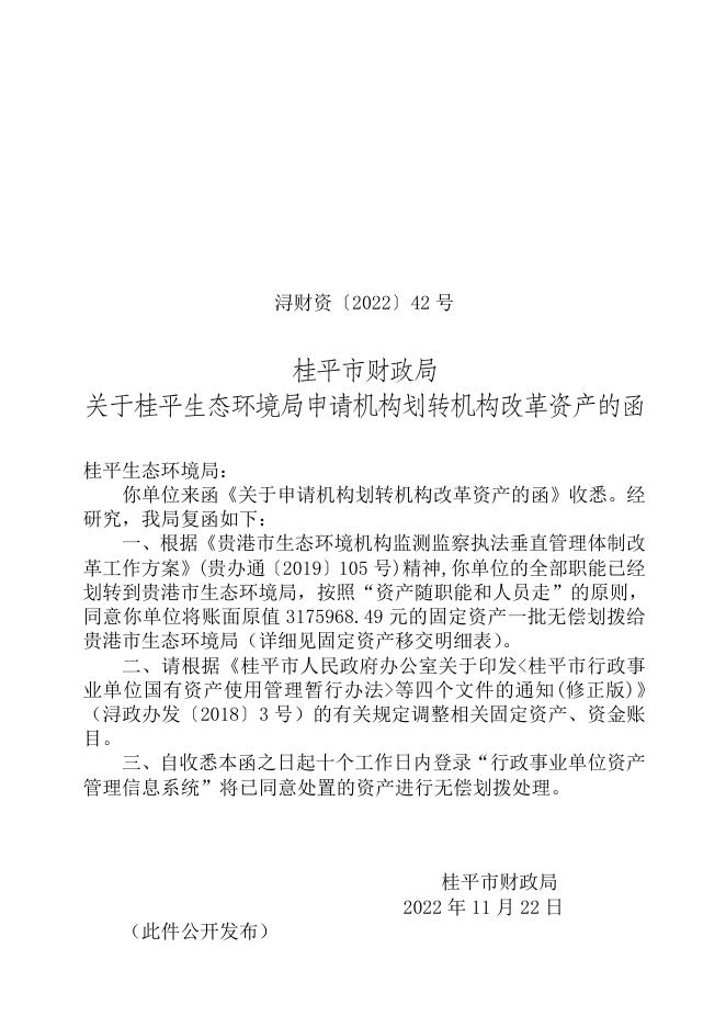 浔财资【2022】42号--桂平市财政局关于桂平生态环境局申请机构划转机构改革资产的函.doc