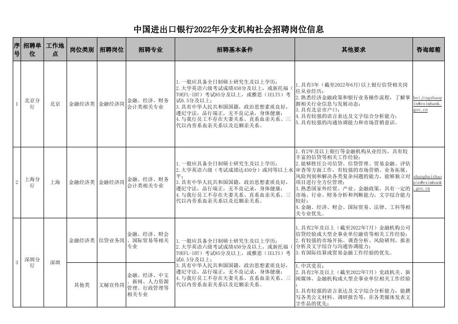 中国进出口银行分支机构2022年社会招聘岗位信息.xlsx