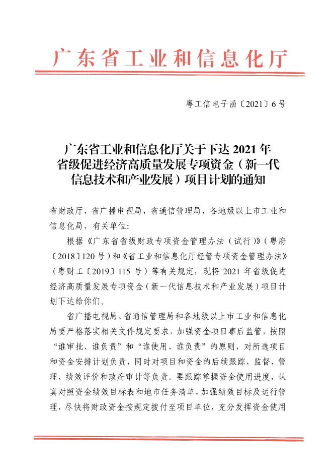 附件1:广东省工业和信息化厅关于下达2021年省级促进经济高质量发展专项资金(新一代信息技术和产业发展)项目计划的通知.pdf