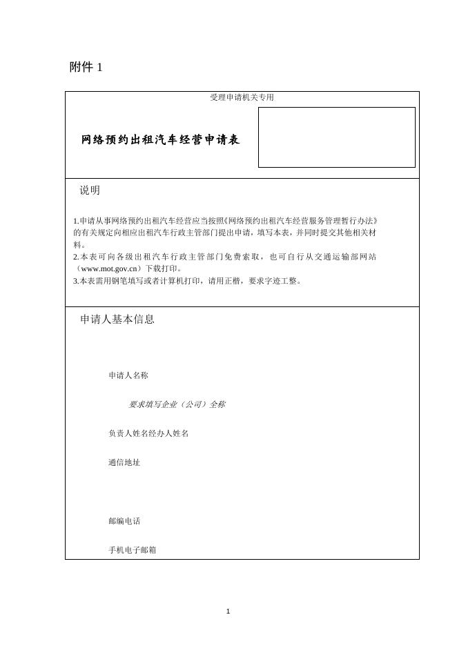 附件1.网络预约出租汽车经营申请表.doc