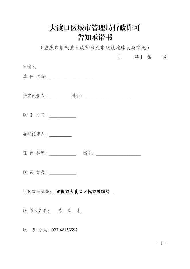 大渡口区城市管理局行政许可告知承诺书(重庆市用气接入改革涉及市政设施建设类审批,涉及城市绿地、树木审批).pdf