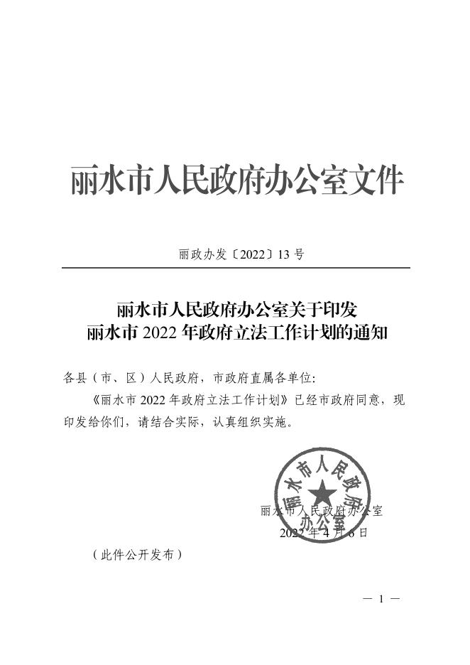 丽水市人民政府办公室关于印发丽水市2022年政府立法工作计划的通知(黑章).pdf