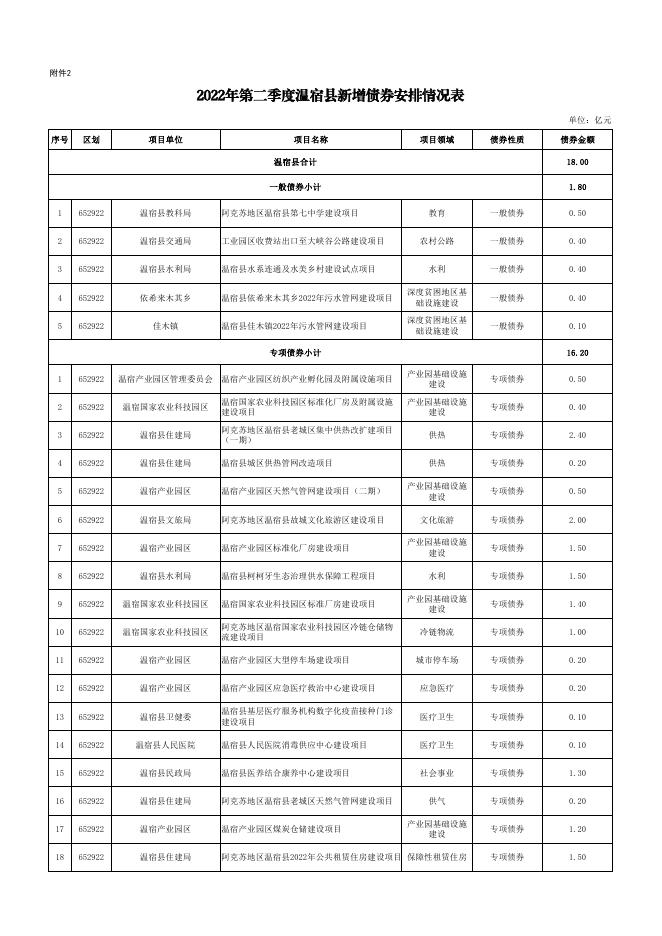 附件2 2022年第二季度温宿县新增债券安排情况表.pdf