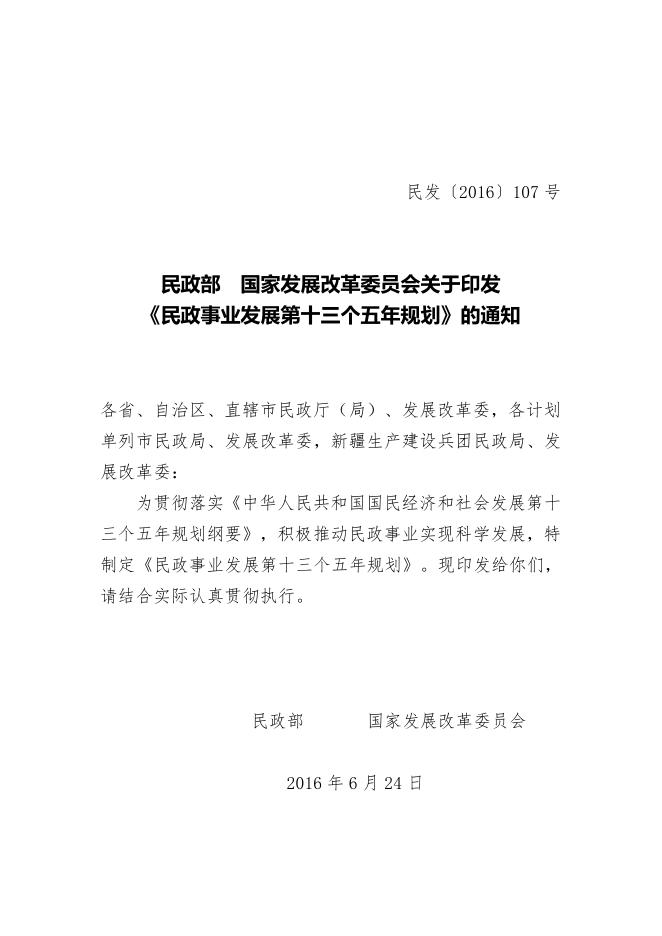民政部 国家发展改革委员会关于印发《民政事业发展第十三个五年规划》的通知.pdf