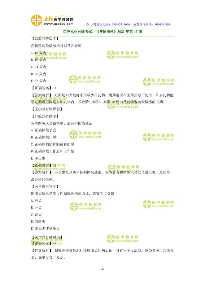 口腔执业医师考试:《答疑周刊》2021年第42期.doc