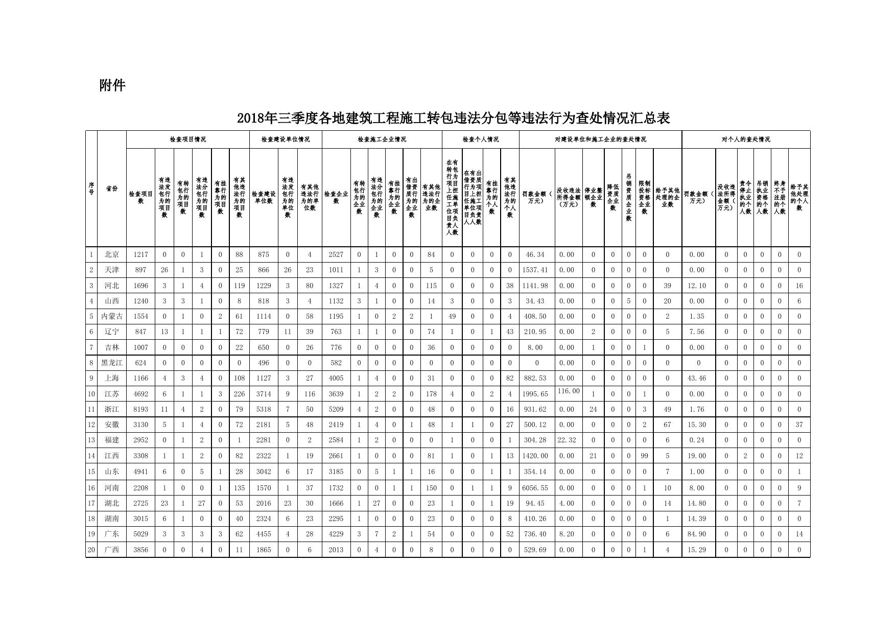 2018年三季度各地建筑工程施工转包违法分包等违法行为查处情况汇总表.xls