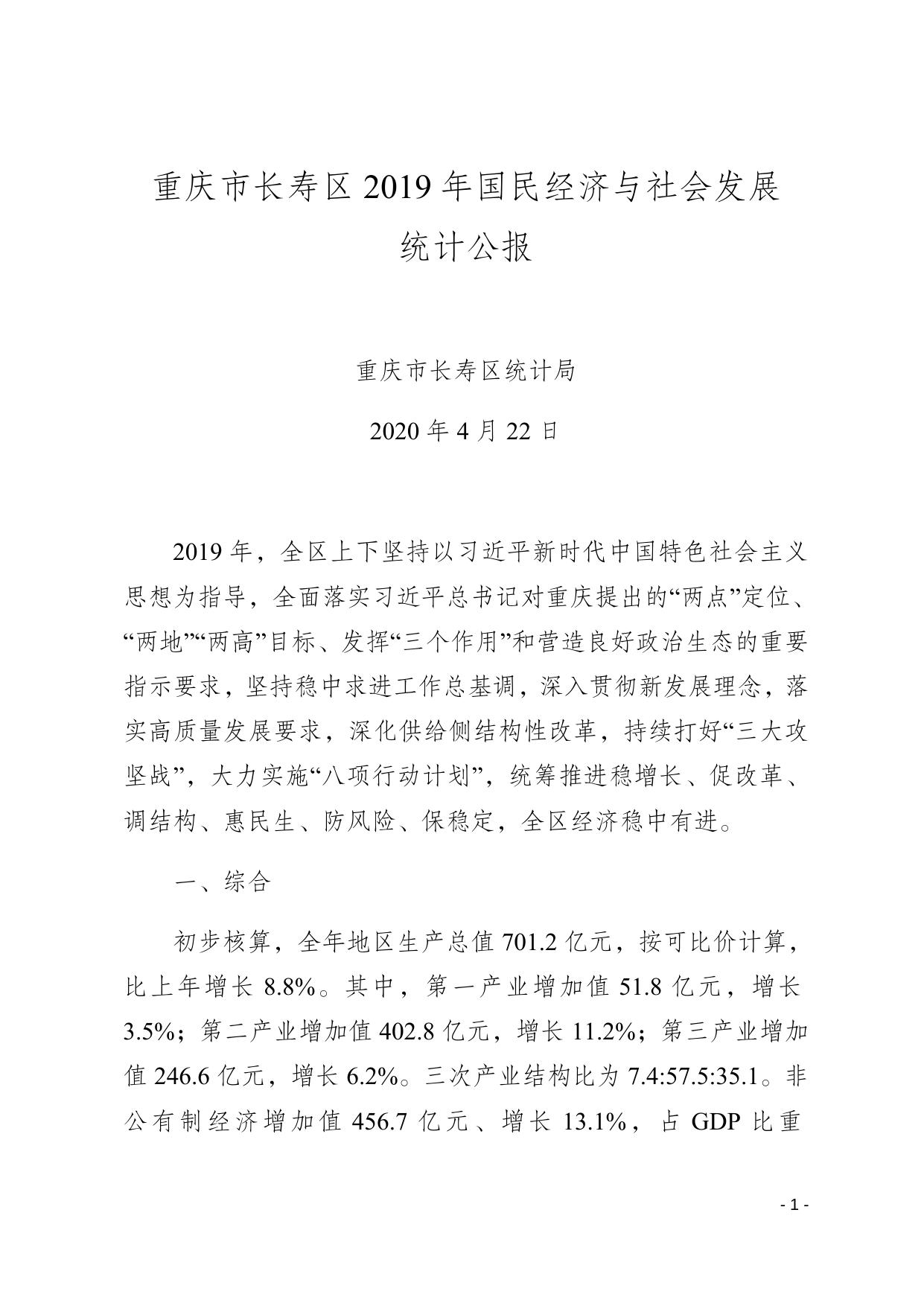 重庆市长寿区2019年国民经济与社会发展统计公报.docx