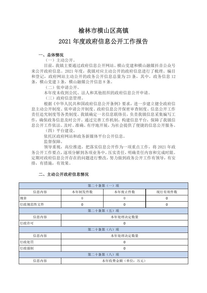 横山区高镇2021年度政府信息公开工作报告.pdf