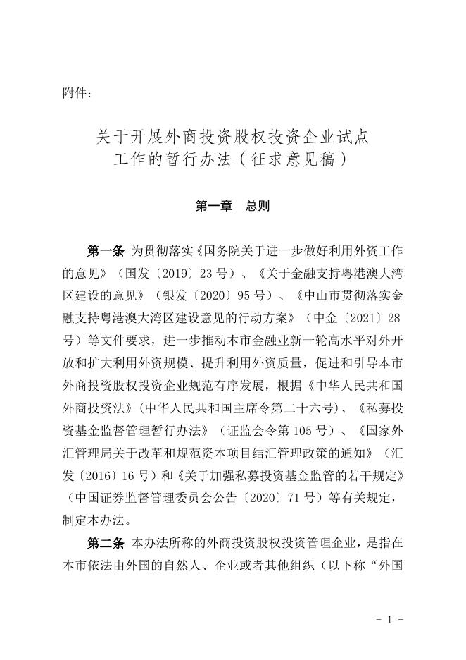 附件1:《关于开展外商投资股权投资企业试点工作的暂行办法》(征求意见稿).doc