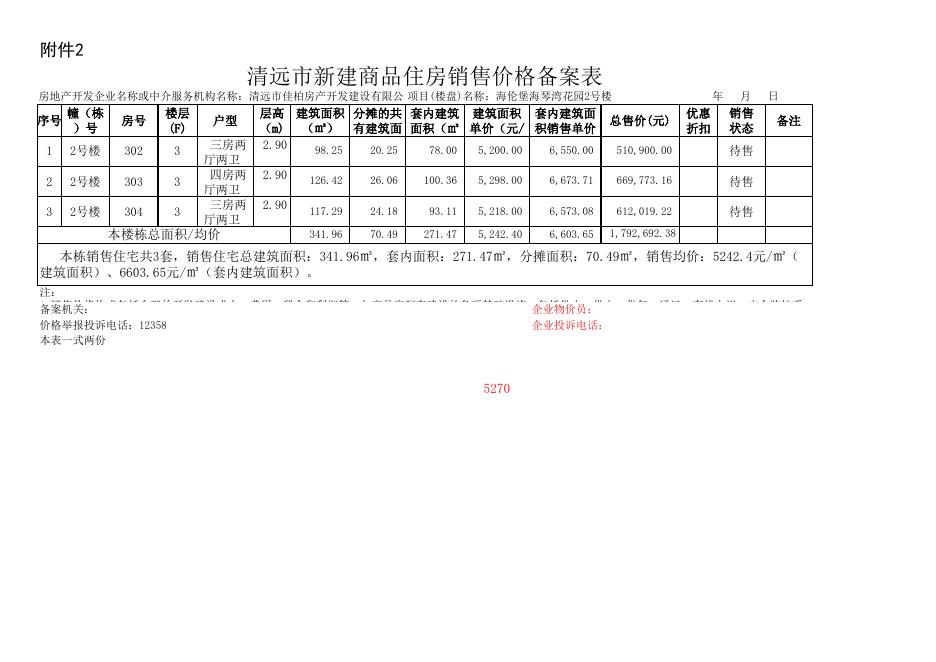 海伦堡海琴湾花园2号楼新建商品住房销售价格备案表.xls