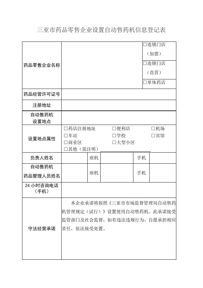 附件 三亚市药品零售企业设置自动售药机信息登记表.docx