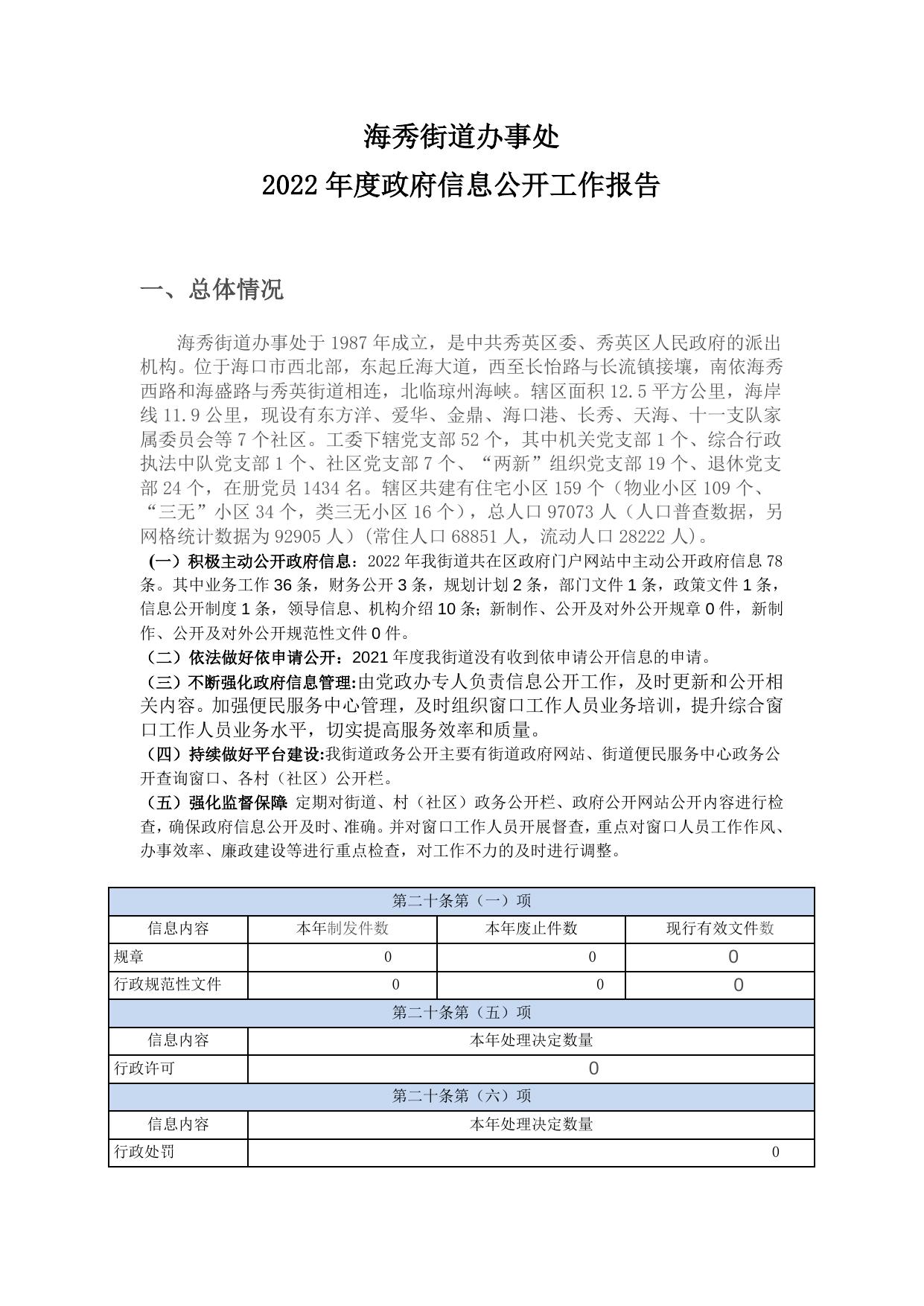 海秀街道办事处2022年度政府信息公开工作报告.doc