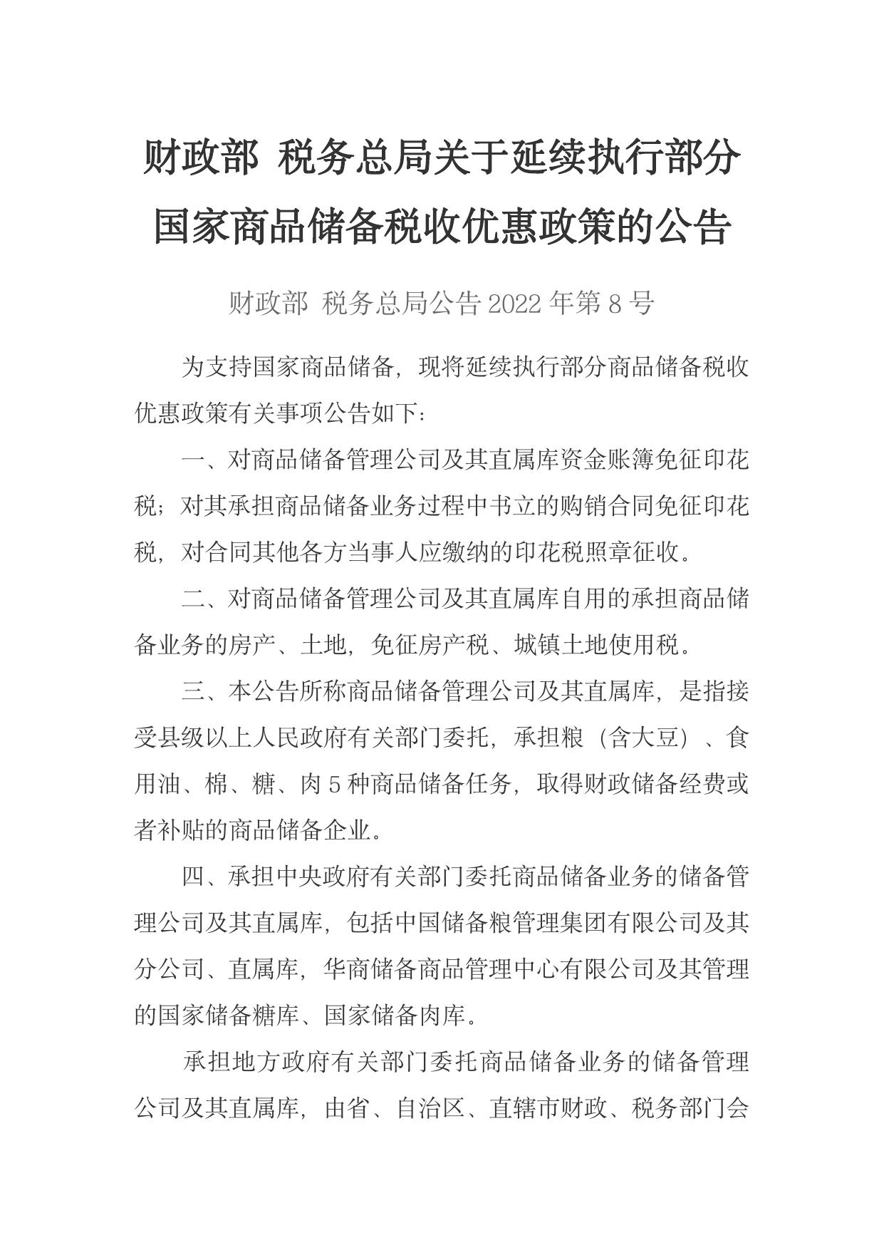 财政部 税务总局关于延续执行部分国家商品储备税收优惠政策的公告.pdf