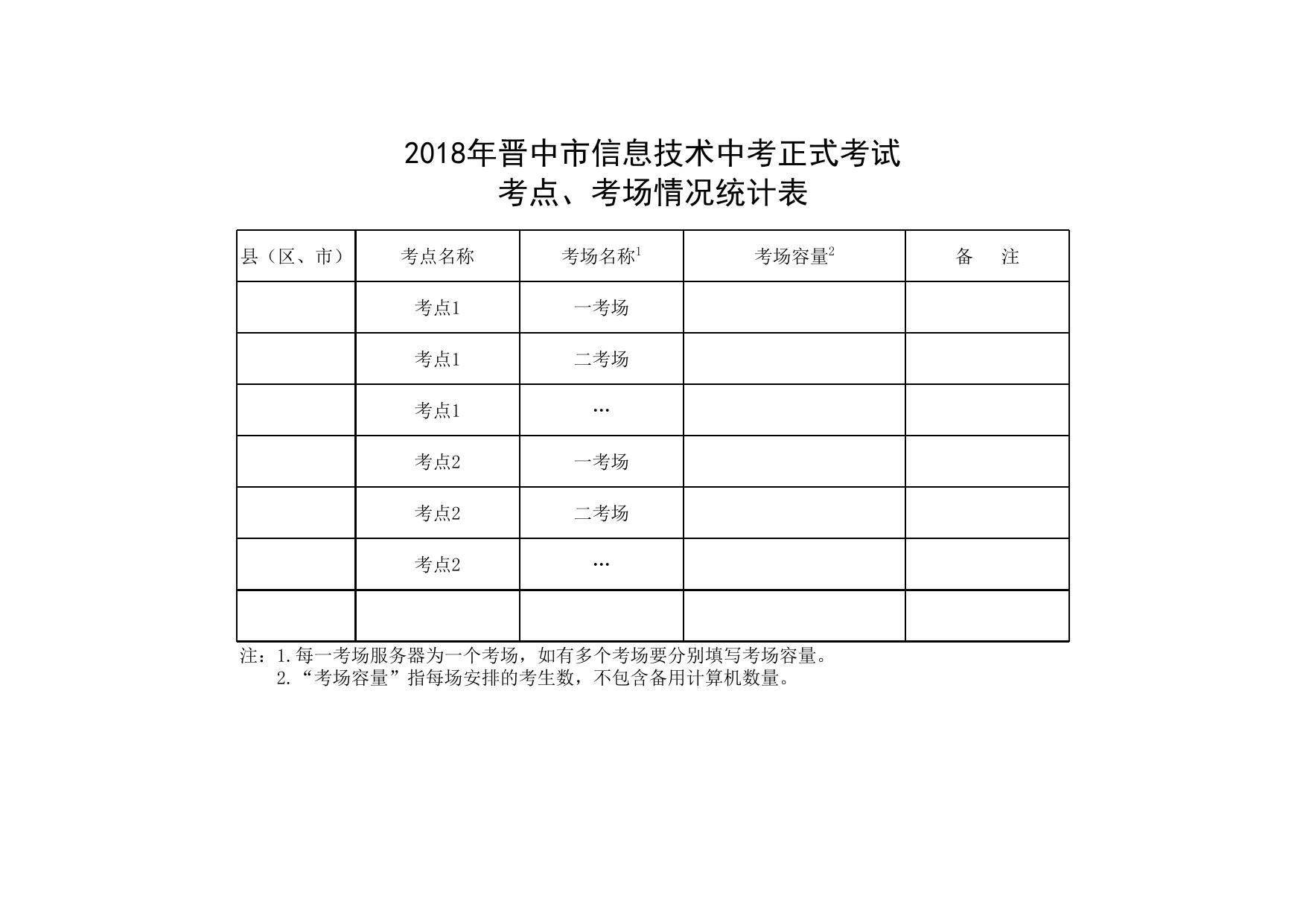 附件2-2018年晋中市信息技术中考正式考试考点、考场情况统计表.xls