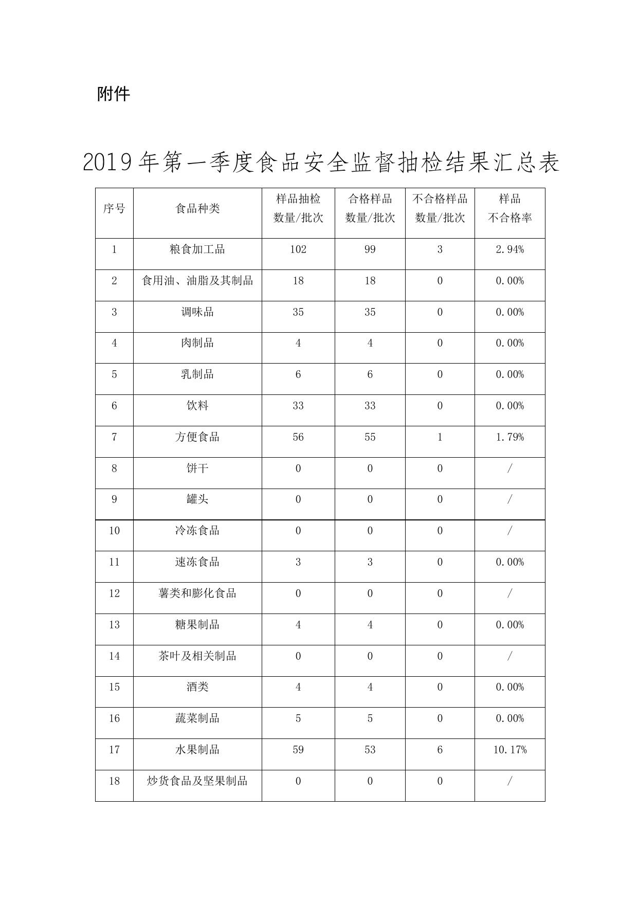 附件:2019年第一季度食品安全监督抽检结果汇总表 - 副本.docx