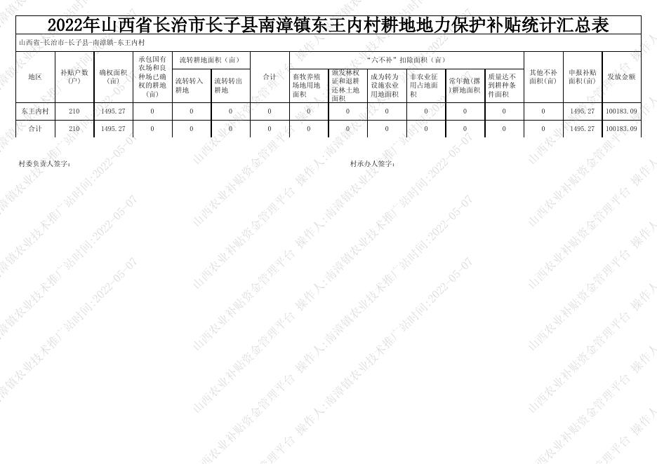 2022年东王内村耕地地力保护补贴统计表pdf