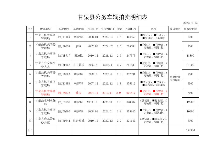 甘泉县公务车辆明细表.xls