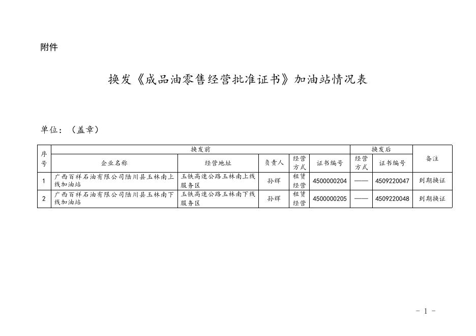 附件:换发《成品油零售经营批准证书》加油站情况表(1).doc