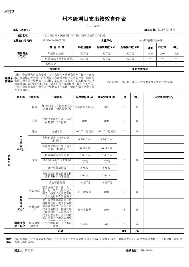 附件2:州本级项目支出绩效自评表(“文明在行动·满意在黔南”暨乡镇环境整治工作经费).xlsx