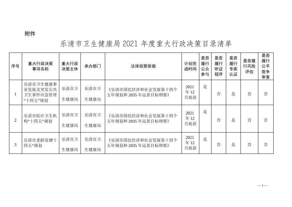 附件 乐清市卫生健康局2021年度重大行政决策目录清单.doc