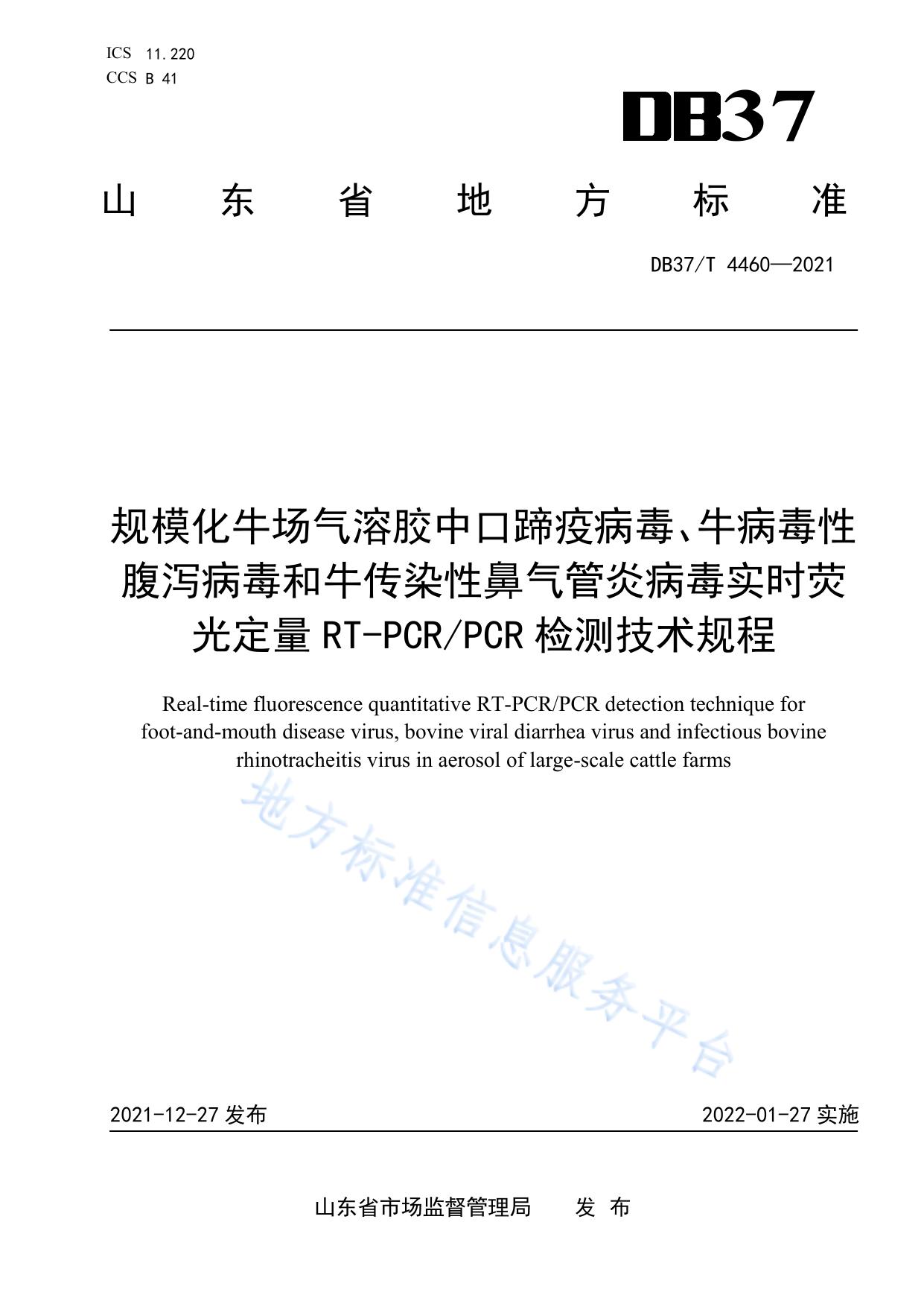 规模化牛场气溶胶中口蹄疫病毒、牛病毒性腹泻病毒和牛传染性鼻气管炎病毒实时荧光定量RT-PCRPCR检测技术规程