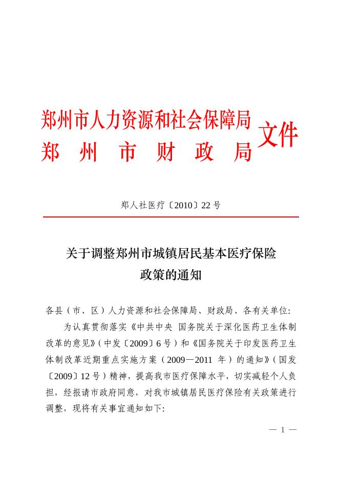 关于调整郑州市城镇居民基本医疗保险政策的通知.pdf