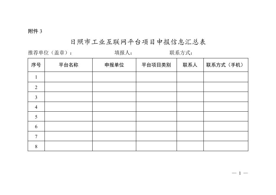 附件3:日照市工业互联网平台项目申报信息汇总表.doc