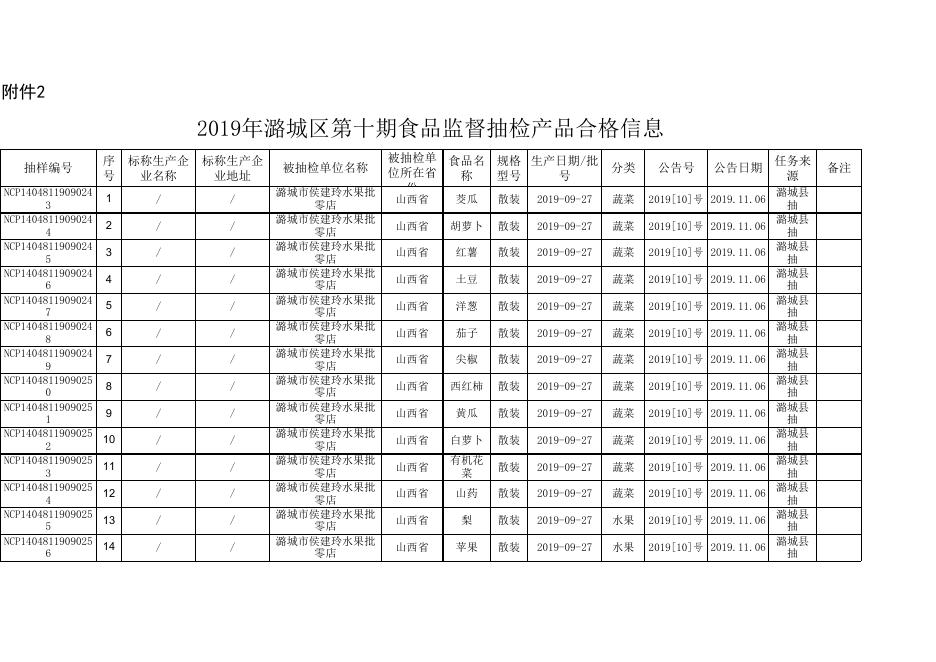 2019年第10期食品监督抽检产品合格信息.xlsx