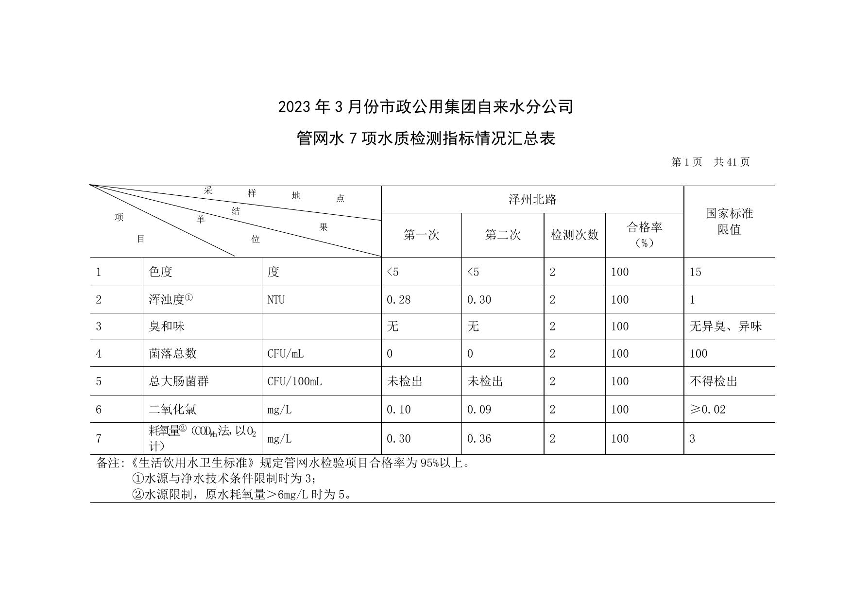 2023年3月份市政公用集团自来水分公司管网水7项水质检测指标情况.doc