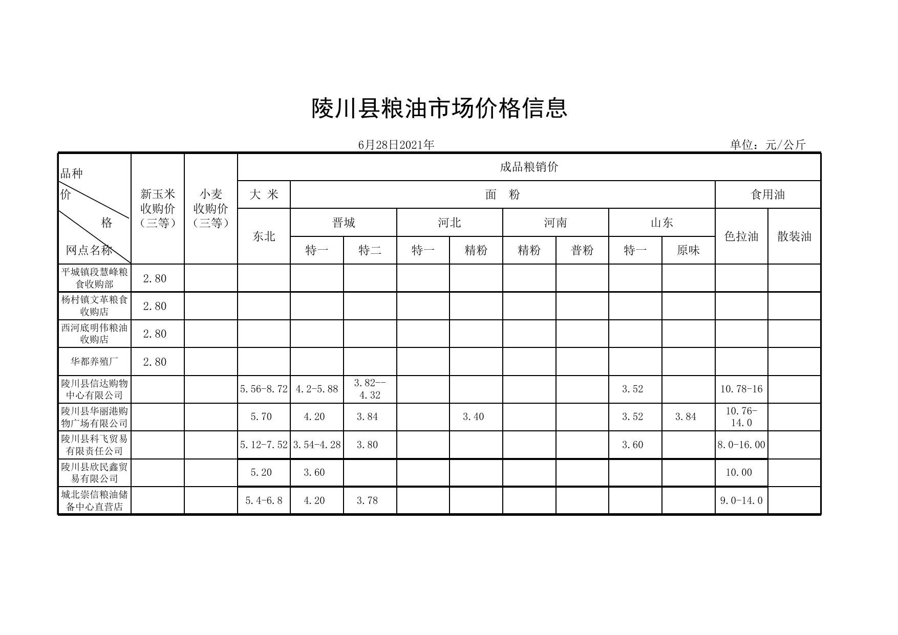 陵川县粮油市场价格信息表6.28(1).xlsx
