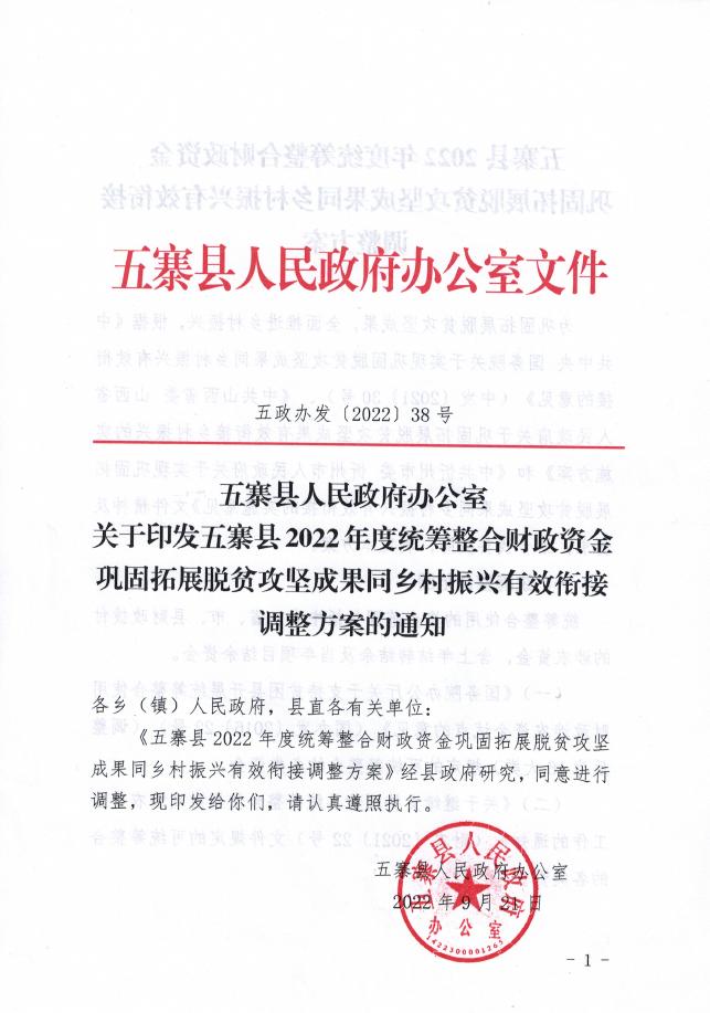 五寨县人民政府办公室关于印发五寨县2022年度统筹整合财政资金巩固拓展脱贫攻坚成果同乡pdf