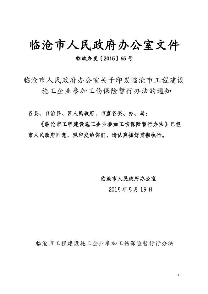 临沧市工程建设施工企业参加工伤保险暂行行办法.doc