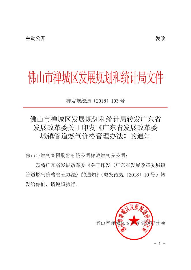 103(章) 佛山市禅城区发展规划和统计局转发广东省发展改革委关于印发《广东省发展改革委城镇管道燃气价格管理办法》的通知.doc