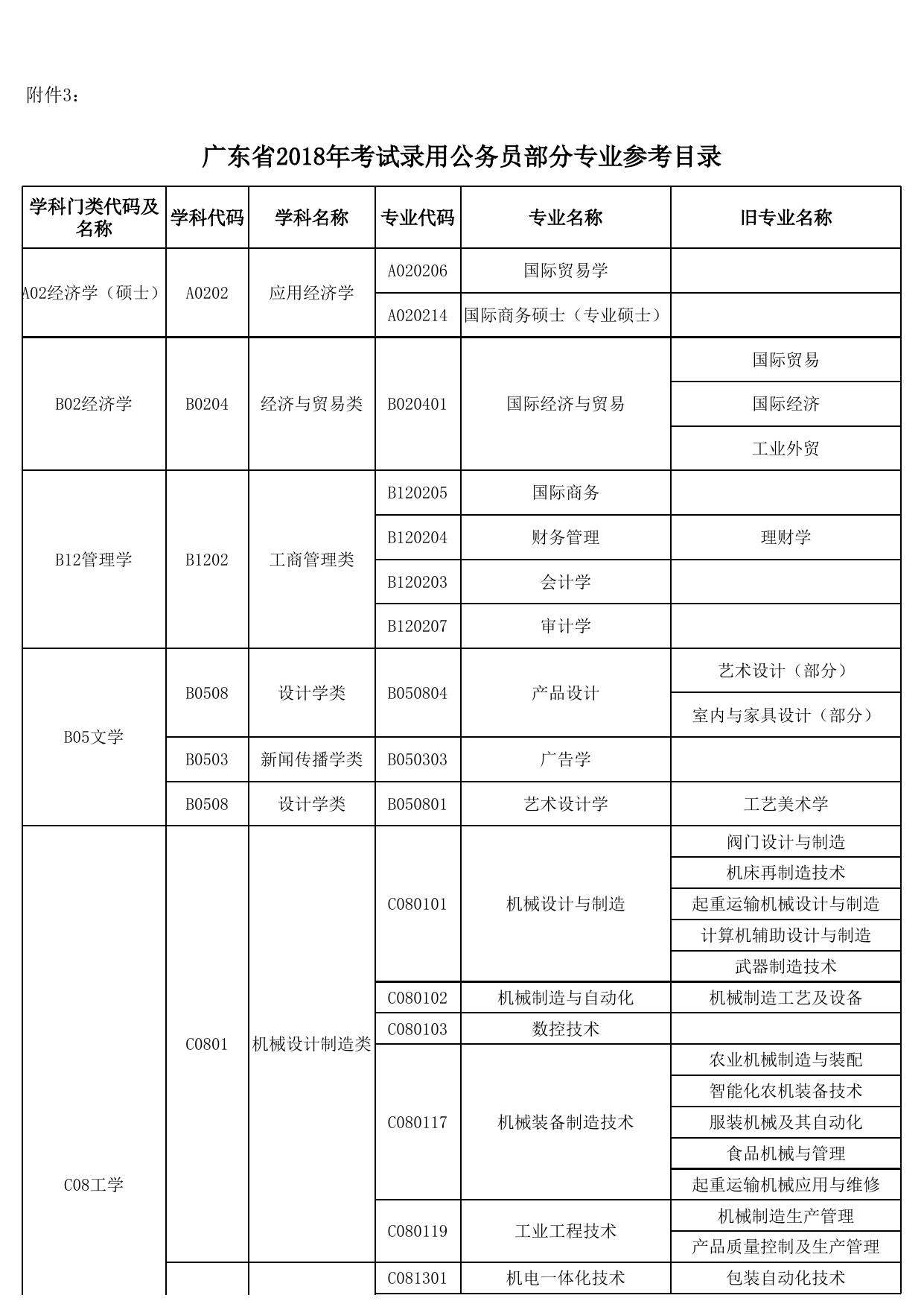 附件3:广东省2018年考试录用公务员部分专业参考目录.xls