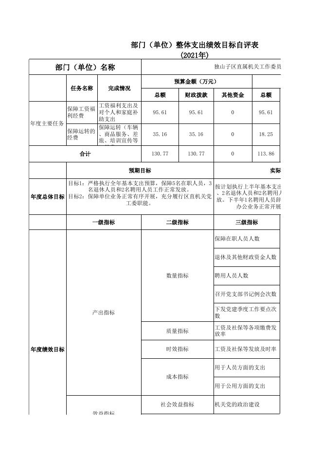 新疆维吾尔自治区克拉玛依市独山子区直属机关工作委员会2021年整体支出绩效自评表.xls