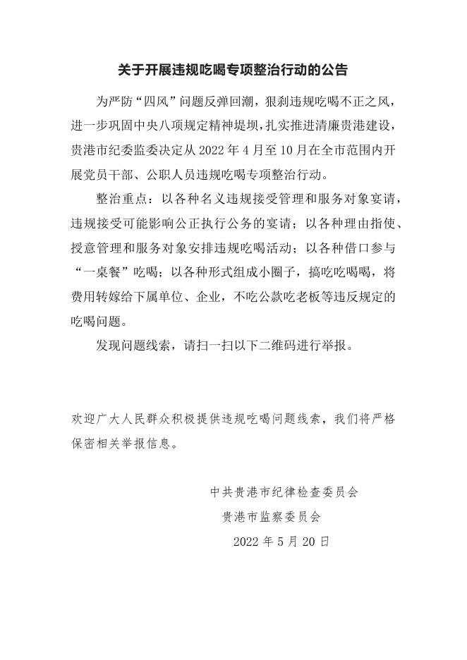 关于开展违规吃喝专项整治行动的公告.docx