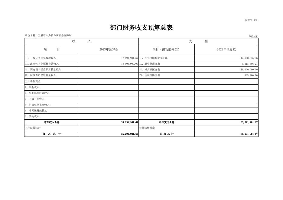玉溪市人力资源和社会保障局(本级)2023年部门预算公开表.xlsx