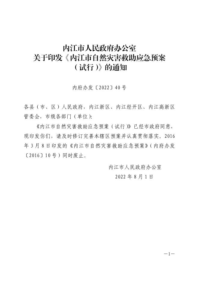 内江市人民政府办公室关于印发《内江市自然灾害救助应急预案(试行)》的通知.pdf