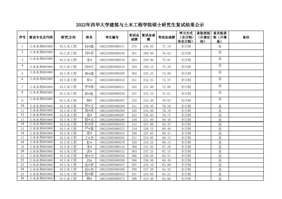 2022年西华大学建筑与土木工程学院硕士研究生复试结果公示.pdf